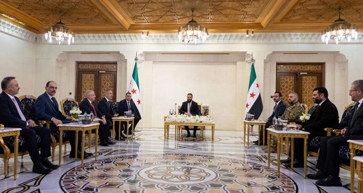 Bakan Fidan, Bakan Güler ve MİT Başkanı Kalın’ın başkent Şam’daki temasları kapsamında Suriye Cumhurbaşkanı Ahmed Şara ile bir araya gelindi. Görüşmeler, Beşar Esad rejiminin devrilmesinin birinci yıl dönümüne denk gelmesi bakımından da ayrı bir önem taşıdı. Edinilen bilgilere göre ziyarette, Türkiye-Suriye ilişkilerinin son bir yıllık seyri siyasi, ekonomik ve güvenlik boyutlarıyla kapsamlı şekilde masaya yatırıldı. Türkiye’nin ulusal güvenliğini yakından ilgilendiren 10 Mart Mutabakatı’nın uygulanma sürecindeki mevcut tablo da ayrıntılı biçimde ele alındı.
